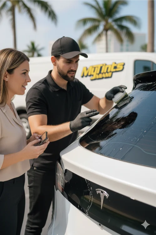 Miami car mobile window tinting by our pro team, no shop visit needed.